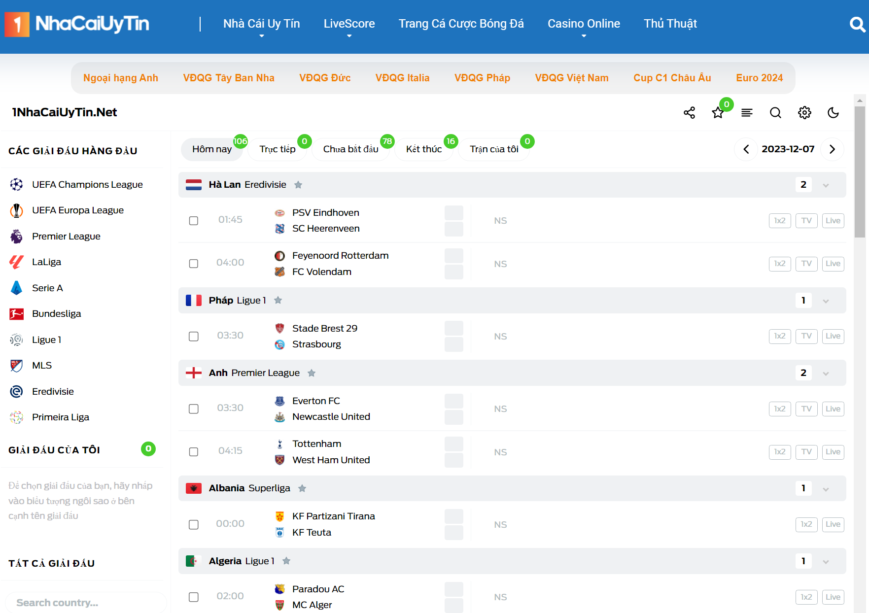 Bạn truy cập vào các trang báo thể thao, các trang phát bóng đá hoặc các nhà cái uy tín, tìm trận đấu và xem tỷ số trực tiếp.